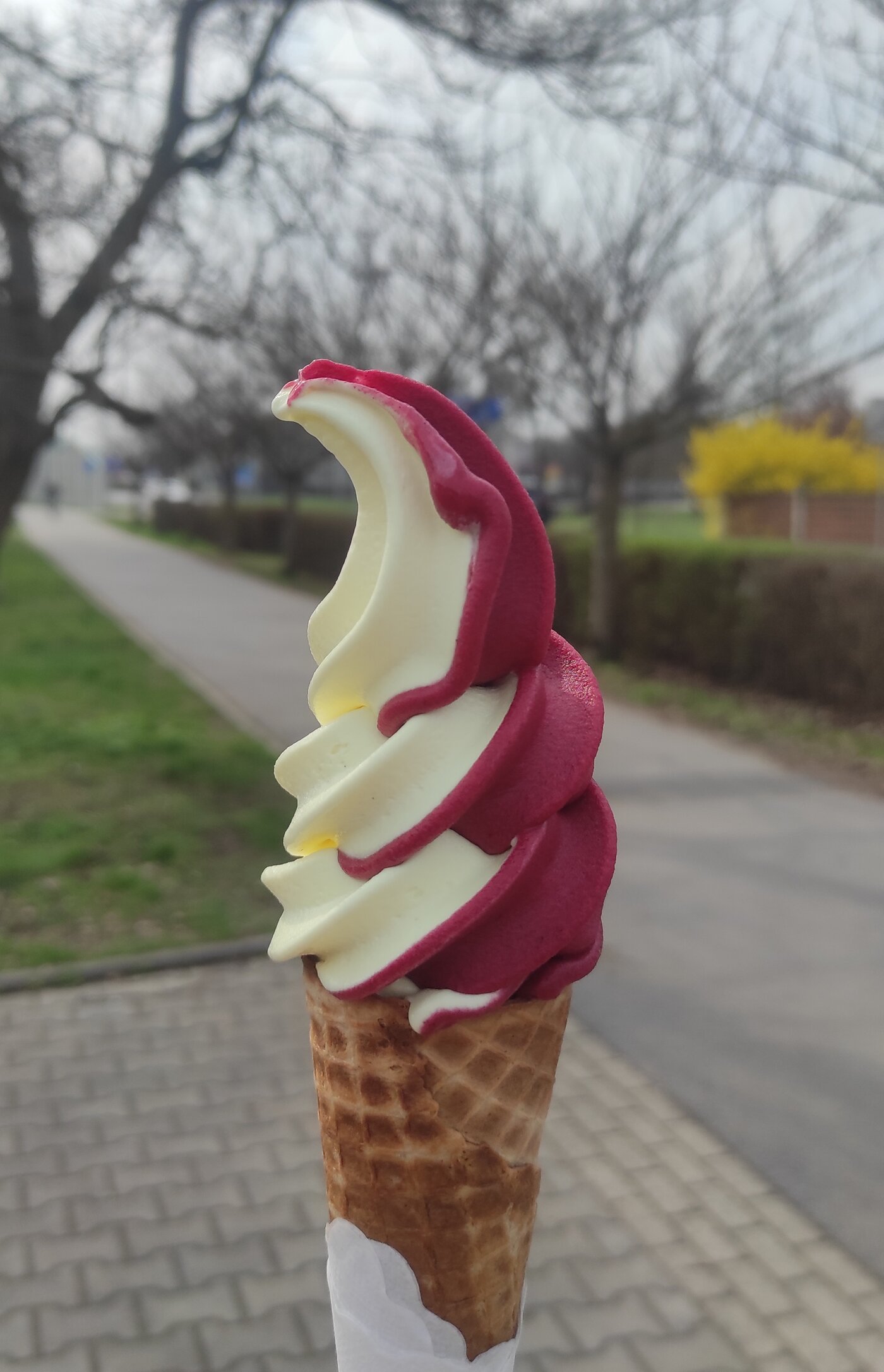 Zákusek z pistáciového krému z mascarpone, smetany a bílé čokolády, uvnitř najdete nugátový vklad, který je pokrytý vrstvou marcipánu a úplně vespod je jemný mandlo-pistáciový korpus.