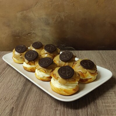 Složení: mouka, vejce, cukr, puding, karamelizovaný cukr, smetana, mascarpone, pečeť z belgické čokolády
