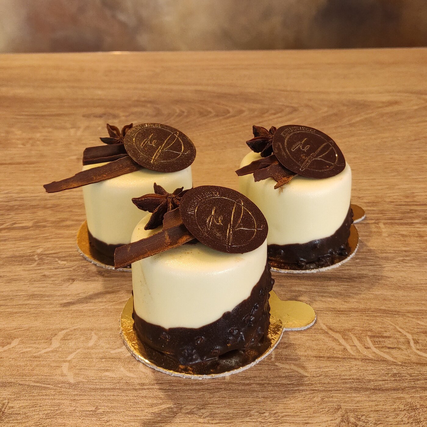 Dezert namočený v mléčné čokoládě, sypaný skořicí a dozdobený zeleným jedlým mechem. Uvnitř se skrývá smetanový krém se skořicí a mléčnou čokoládou s višňovým kladem, položený na čokoládovém korpusu.